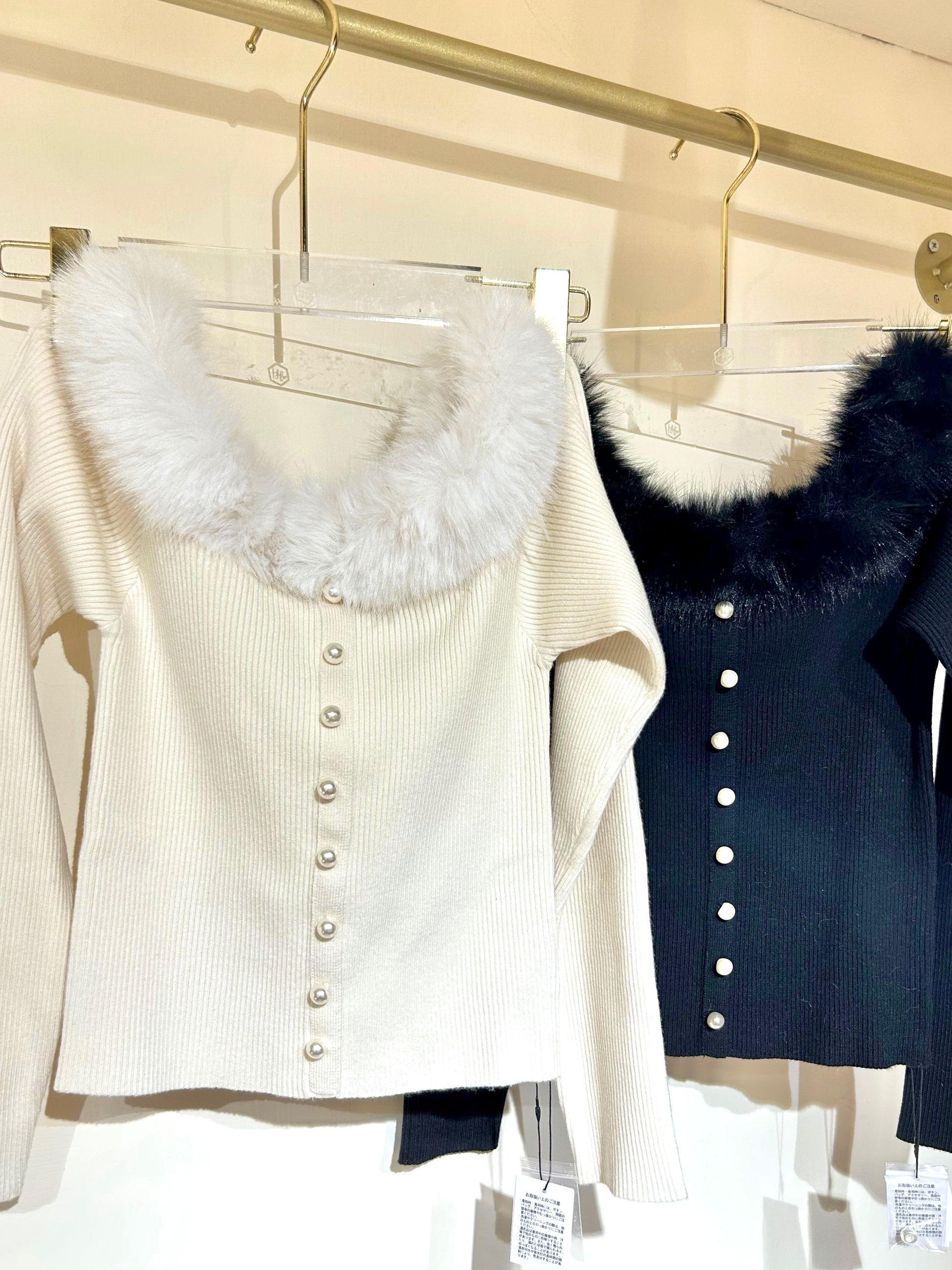毛毛領羅紋針織Top